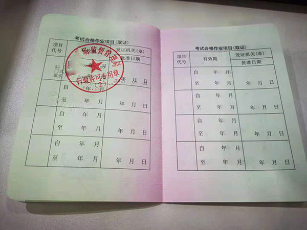 考試內容分理論知識和實際操作。理論考試題目數量為100題,考試時間為60分鐘。實際操作考試內容為部件識別、基本操作、應急處置,70分及格,證書由市場監督管理局頒發的證書!