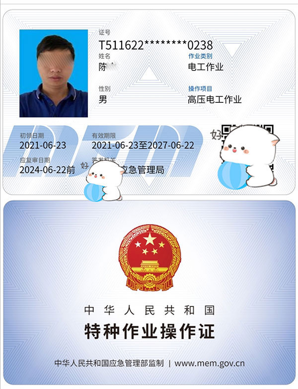 一、特種作業(yè)操作證:應急管理廳頒發(fā)。作業(yè)種類:電工(俗稱 操作證、上崗證)。分類: 高壓操作、低壓操作。這也是高低壓電工的由來吧。但是這并不代表你具體干的是哪一個工種的電工,只是允許你進行高壓或者低壓作業(yè)。此證不代表你的技術高低。