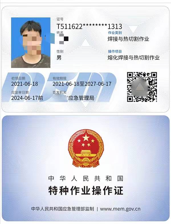 熔焊,又叫熔化焊,是一種最常見的焊接方法。所謂熔焊,是指焊接過程中,將聯接處的金屬在高溫等的作用下至熔化狀態而完成的焊接方法,可形成牢固的焊接接頭。由于被焊工件是緊密貼在一起的,在溫度場、重力等的作用下,不加壓力,兩個工件熔化的融液會發生混合現象。待溫度降低后,熔化部分凝結,兩個工件就被牢固的焊在一起,完成焊接的方法。由于在焊接過程中固有的高溫相變過程,在焊接區域就產生了熱影響區。固態焊接和熔焊正相反,固態焊接沒有金屬的熔化。特種作業-熔化焊接與熱切割作業-焊工操作證,這個焊工證不分等級,由各省應急廳頒發,哪里發的都可以通用。3年年審一次,證件過期無效。