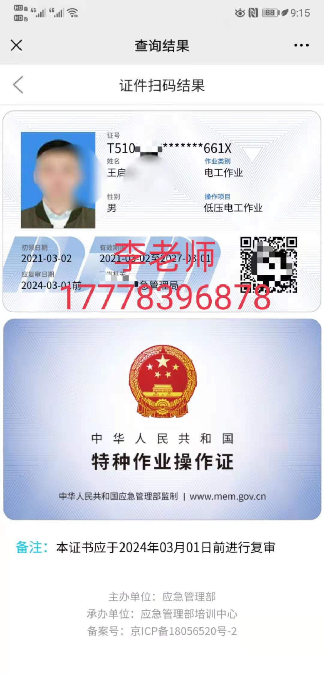 分證2電工進(jìn)網(wǎng)作業(yè)許可證