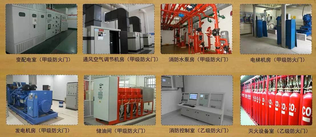 重要設(shè)備間需要設(shè)置防火門,以保護(hù)設(shè)備安全,常用的設(shè)備間有:變配電室(甲級)、通風(fēng)空氣調(diào)節(jié)機(jī)房(甲級)、消防水泵房(甲級)、電梯機(jī)房(甲級)、(發(fā)電機(jī)房甲級)、儲油間(甲級)、消防控制室(乙級)、滅火設(shè)備室(乙級)。