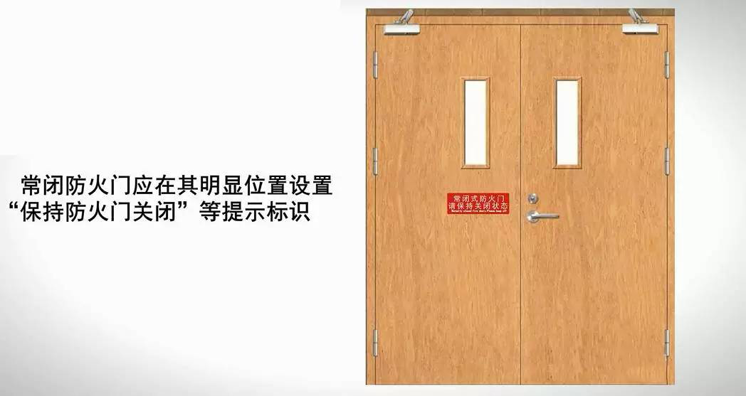 3、常閉防火門應在其明顯位置設置“保持防火門關閉”等提示標識