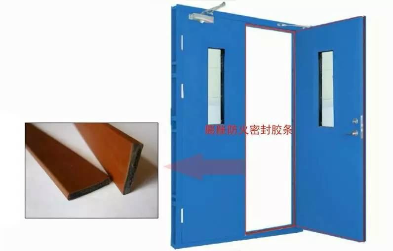 防火門門框與門扇、門扇與門扇的縫隙處應嵌裝防火密封件。比如:膨脹防